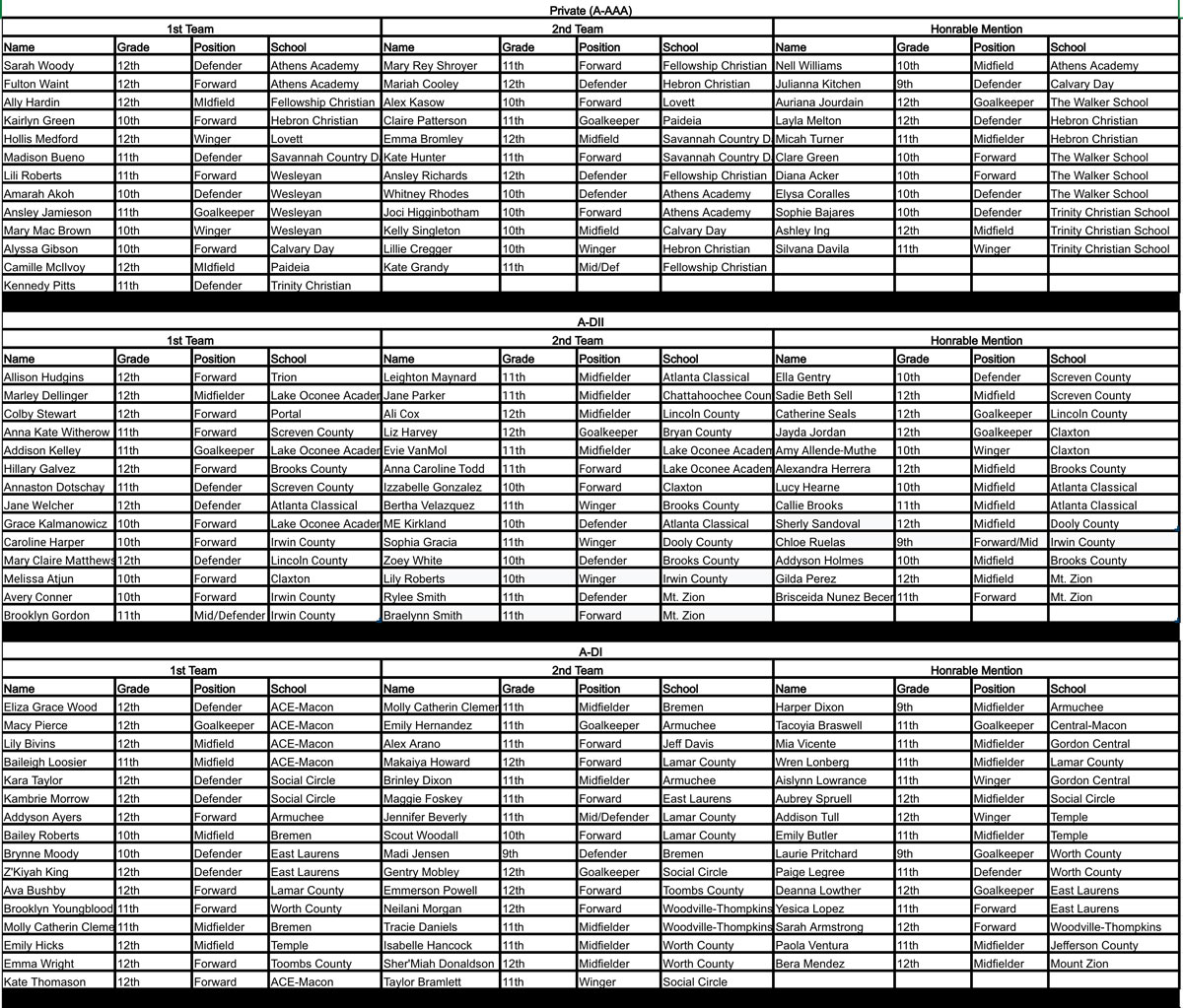GISA / GIAA ALL STATE ROSTER A DIV I -----> CLICK FOR FULL LIST